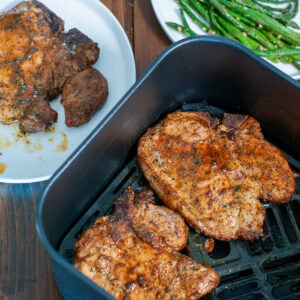 Pork chops have a reputation for being tricky. You can overcook them, and you're stuck with dry pork chops no one wants to eat. I wanted the best air fryer pork recipe that works for thick pork chops, thin pork chops, and everything in between. I have landed on this method that creates a flavorful crust, tender inside, and juicy chops every time. This has easily become one of my favorite air fryer recipes.
