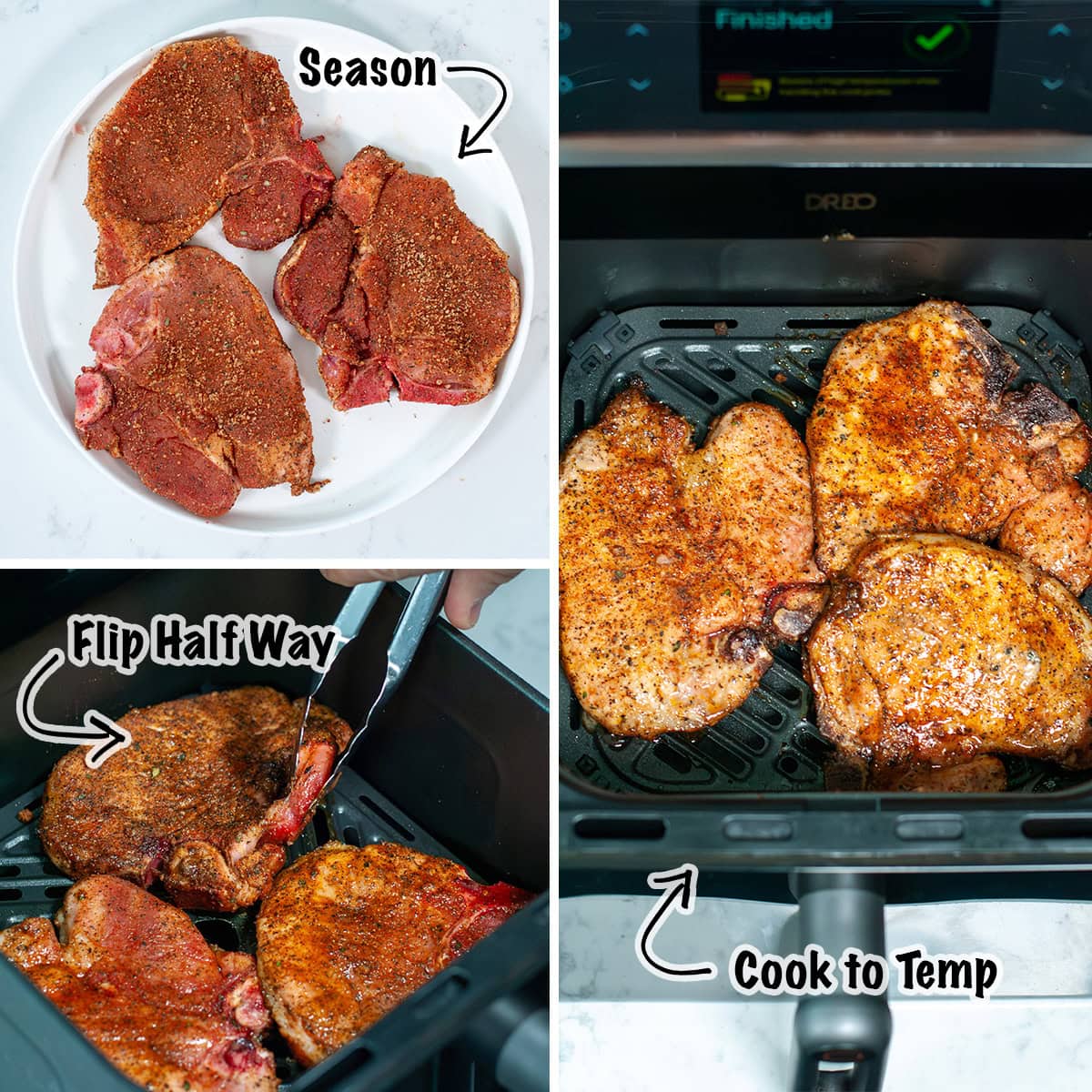 Below are the step-by-step instructions for making these air fryer pork chops that just might become one of your favorite weeknight dinners on repeat.
