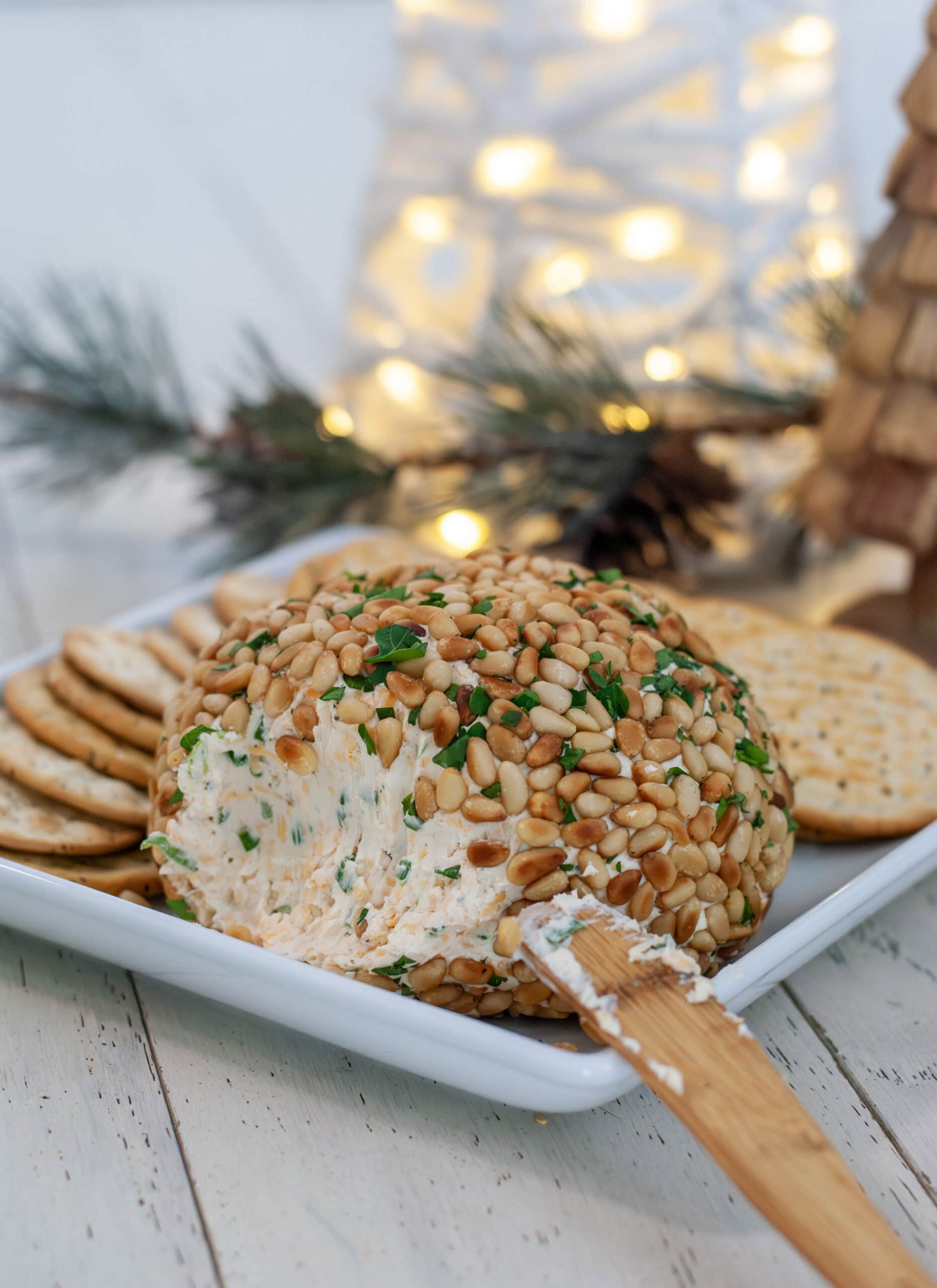 This version keeps all the nostalgic goodness of the traditional cheese ball, but it adds a delicious twist of toasted pine nuts. They bring a subtle buttery crunch that pairs beautifully with the base of cream cheese and sharp cheddar. It gives the whole appetizer a richer flavor and a little extra feel of elegance.