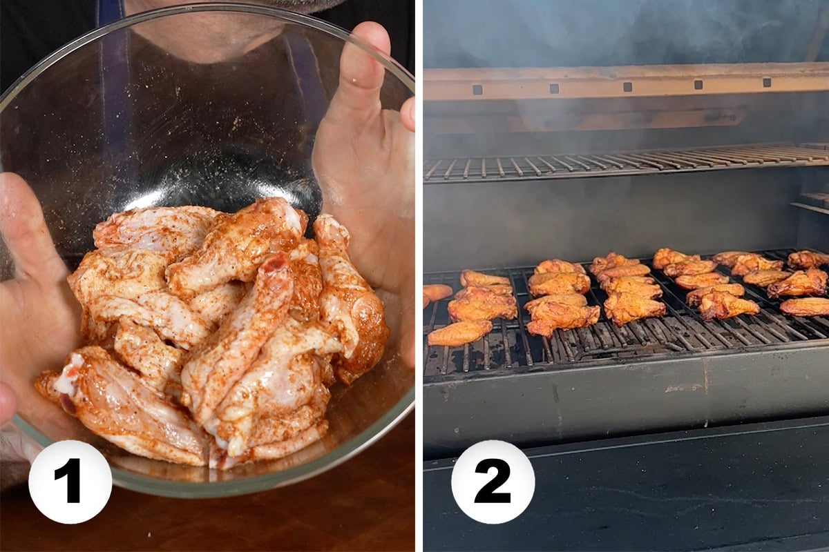 - Smoke the Wings (1 Hour) - Preheat your smoker to 225°F and smoke the wings for 1 hour.
